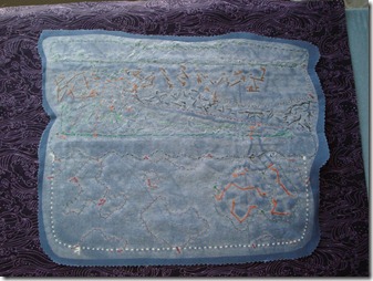 So… here is what it looked like after the embroidery was complete and attached to the new background fabric.
